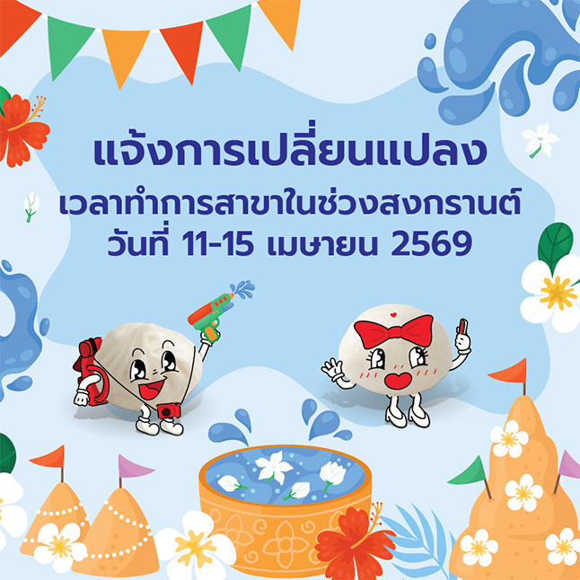 แจ้งการเปลี่ยนแปลงเวลาทำการสาขาในช่วงสงกรานต์
